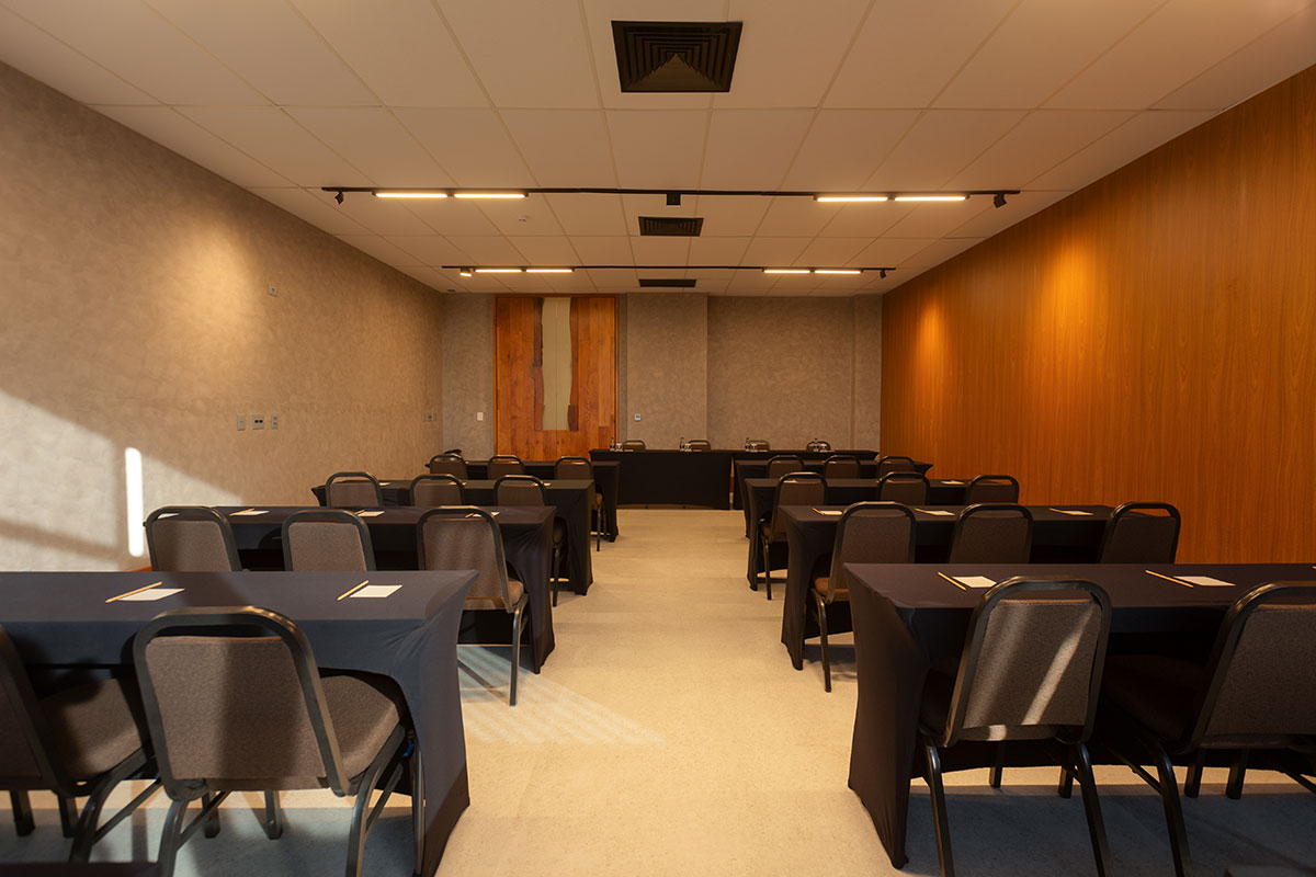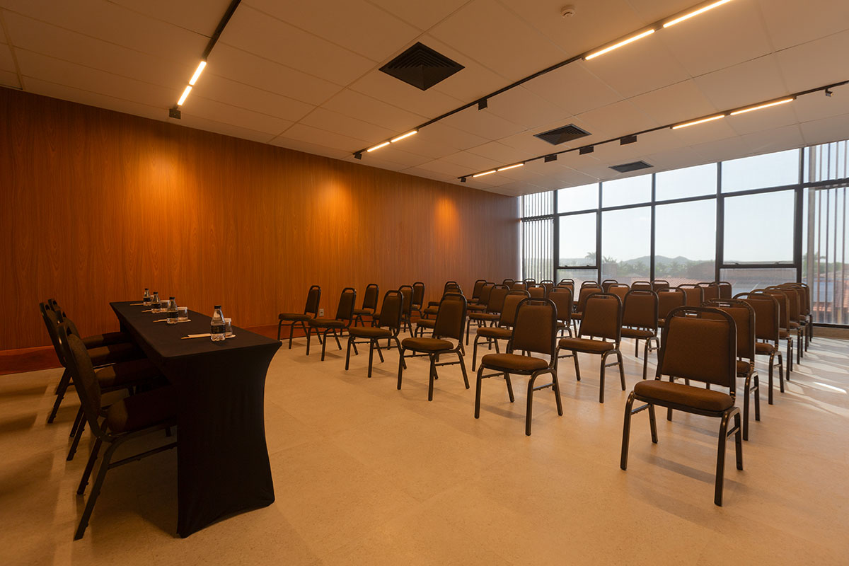 Com 64m², a Sala Niquim é uma opção versátil para reuniões e eventos compactos. Sua estrutura foi projetada para oferecer funcionalidade e conforto, atendendo às necessidades de diferentes tipos de encontros corporativos ou sociais.